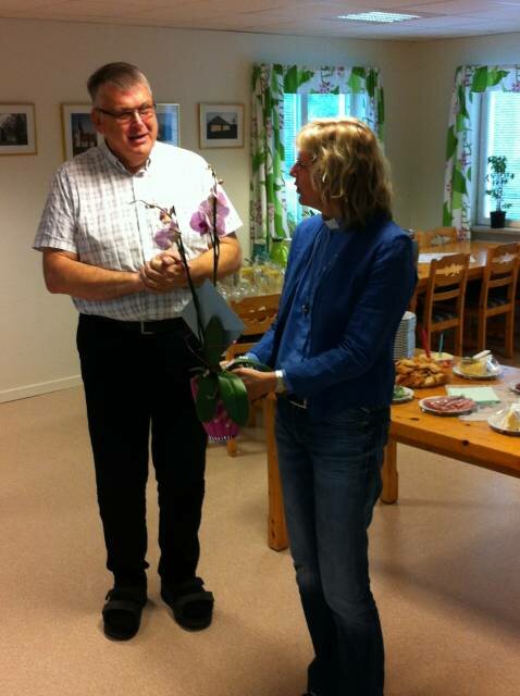 Måndagen den 27 maj bestämde Arbetsutskottet för det nya Pastoratet enhälligt att anställa Martina Åkeson Wollbo som kyrkoherde i Norra Gotlands pastorat from 1 september. Martina tjänstgör idag som komminister i Väskinde församling. På bilden nedan välkomnas Martina av AU:s ordförande Peder Fohlin vid personalsamlingen den 29 maj. Vid AU:s möte bestämdes även att Forsagården i Lärbro skall bli Pastorsexpedition för NGP. Forsagården är centralt placerad och ytmässigt en lämplig lokal.
